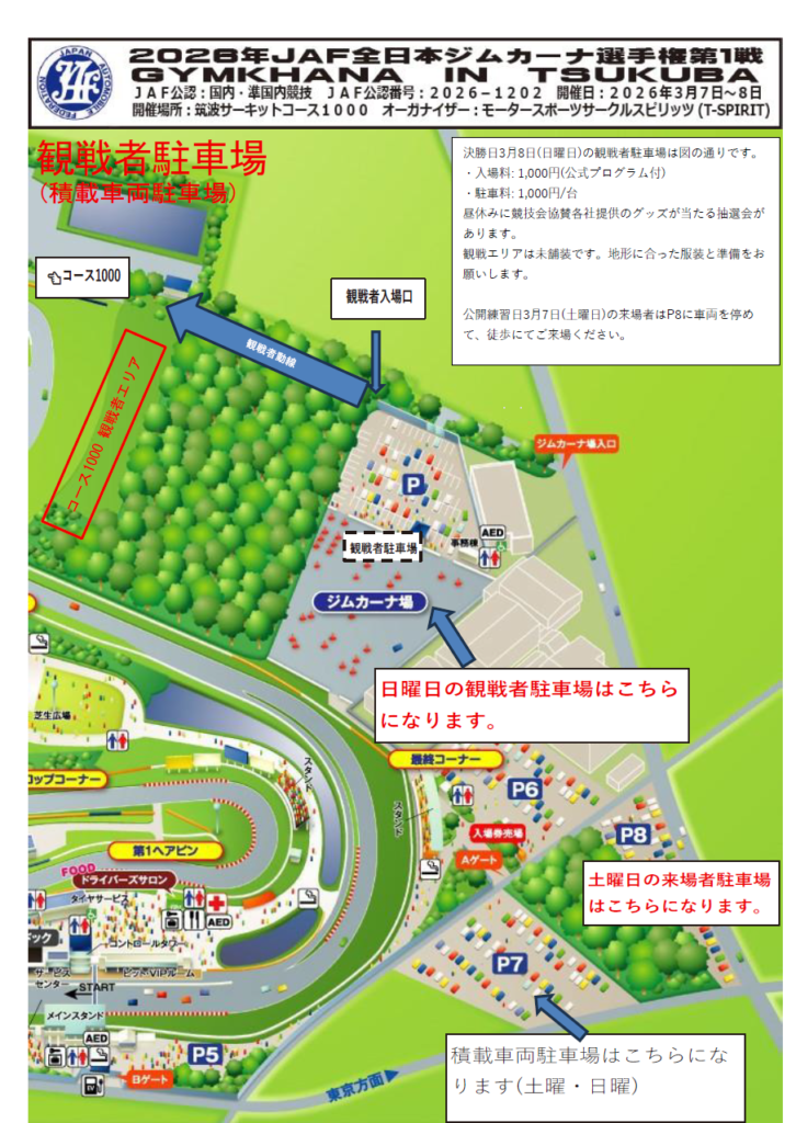 来場者はP8に車を停めて、徒歩にてご来場ください。
